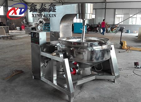 电热锅炒锅的核心是锅体,锅体有大有小,可以选择大的提高产量,锅体的制造是采用一次性成型的不锈钢锅体,保证了锅内的平整光滑,除了使用电热的方法外还可以选择采用蒸汽、液化气、天然气等加热方式,每种的加热方法都有着各自的优势,锅边采用弹簧式,锅底采用自重式,使锅体与搅拌叶片紧密接触,使物料搅拌均匀。